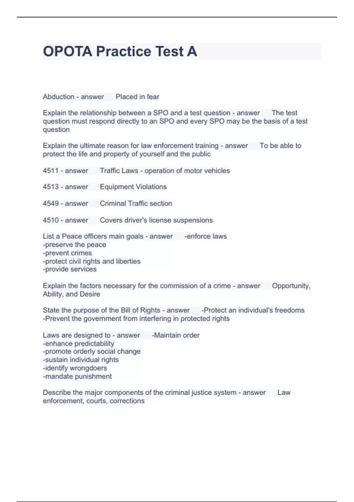 OPOTA Practice Test A