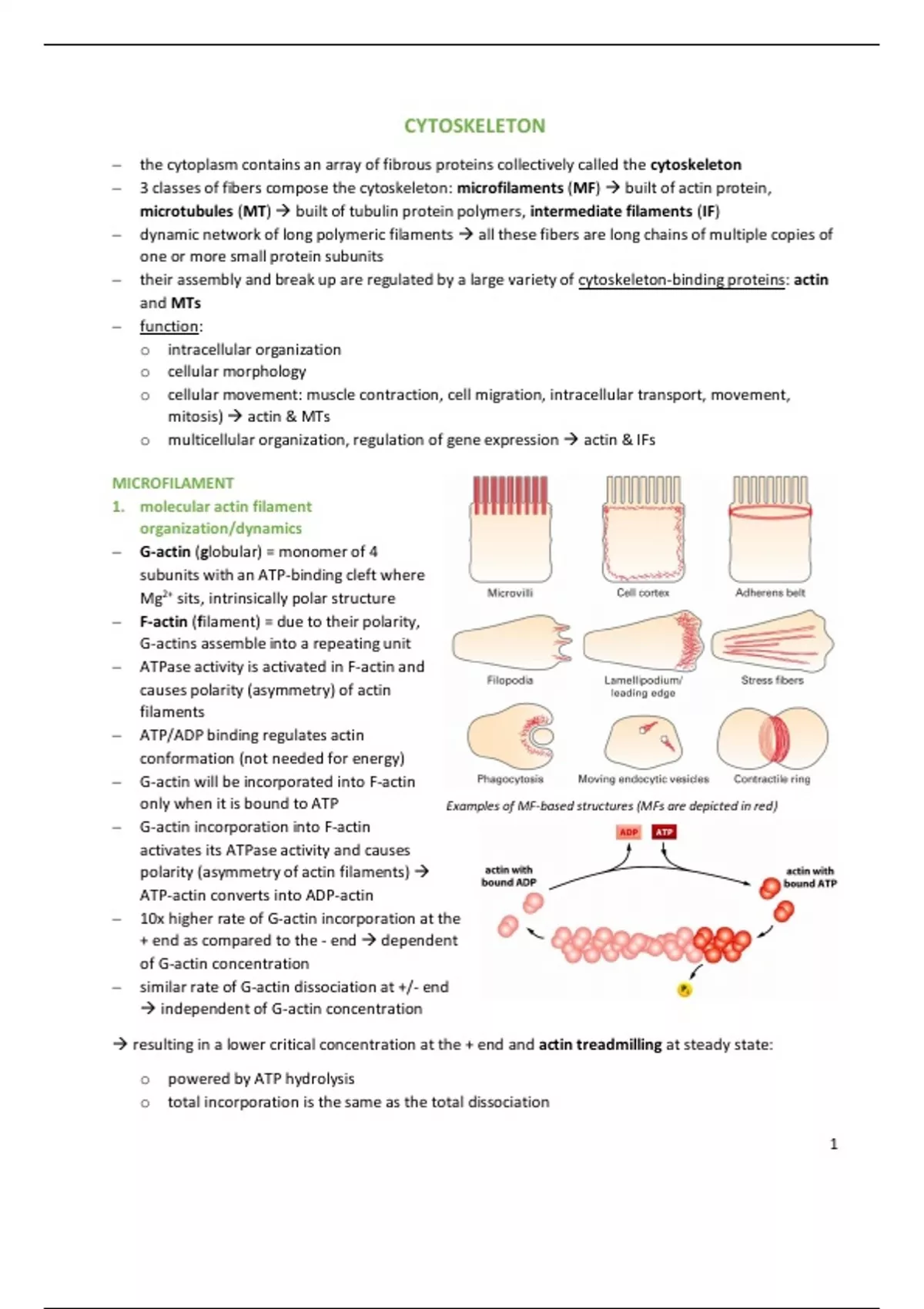 − 3 classes of fibers compose the cytoskeleton: microfilaments (MF) → built of actin protein,