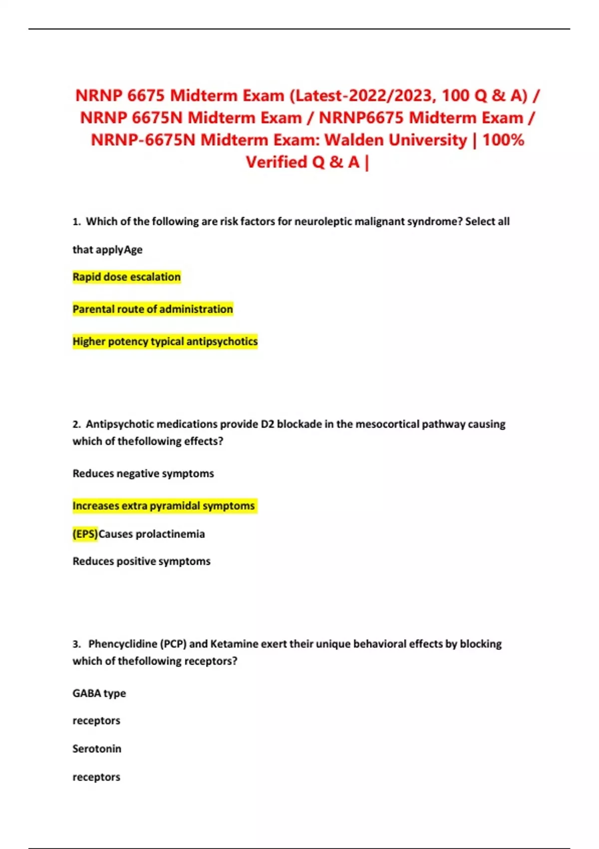 NRNP 6675 Midterm Exam (Latest-2022/2023, 100 Q & A) / NRNP 6675N Midterm Exam / NRNP6675 Midterm Exam / NRNP-6675N Midterm Exam: Walden University | 100% Verified Q & A