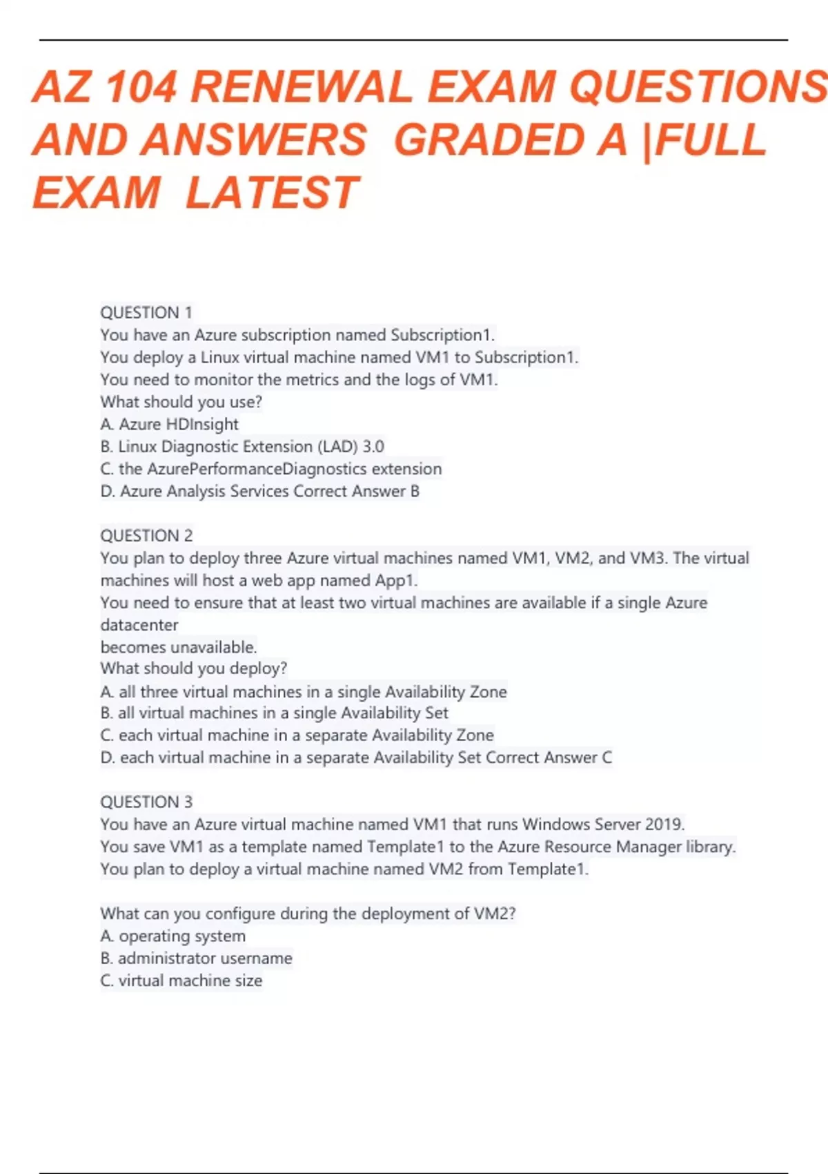 az 104 renewal exam questions and verified answers