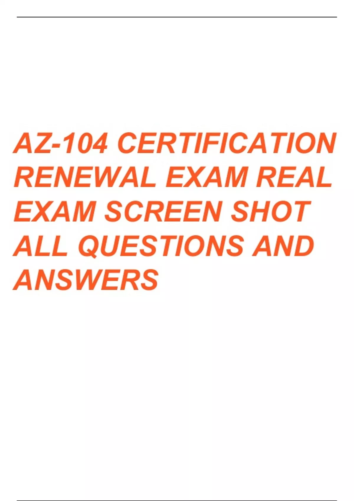 AZ-104 CERTIFICATION RENEWAL EXAM REAL EXAM SCREEN SHOTS ALL QUESTIONS AND CORRECT ANSWERS 2024