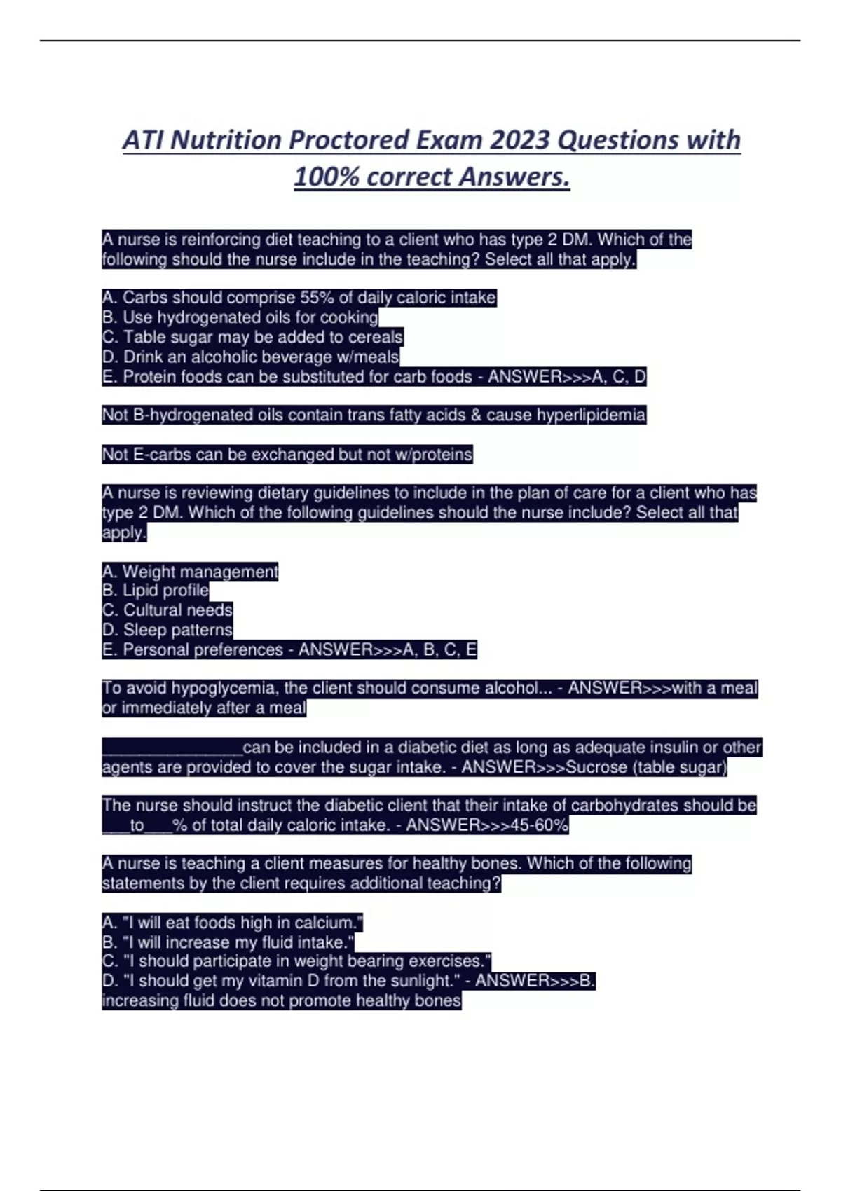 ATI Nutrition Proctored Exam 2023 Questions with 100% correct Answers