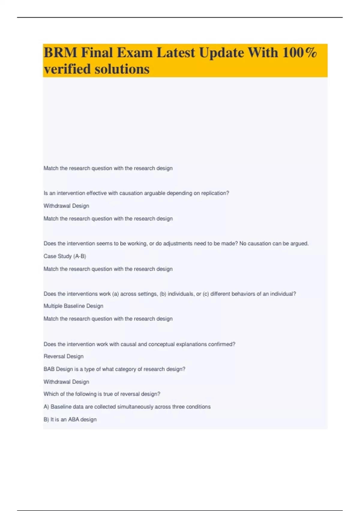 BRM Final Exam Latest Update With 100% verified solutions