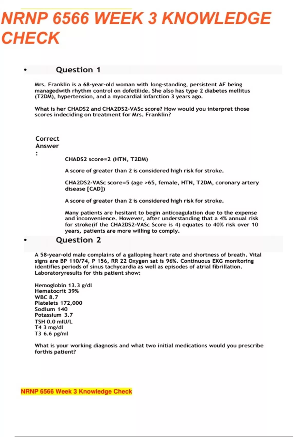 NRNP 6566 Week 3 knowledge check complete Solution