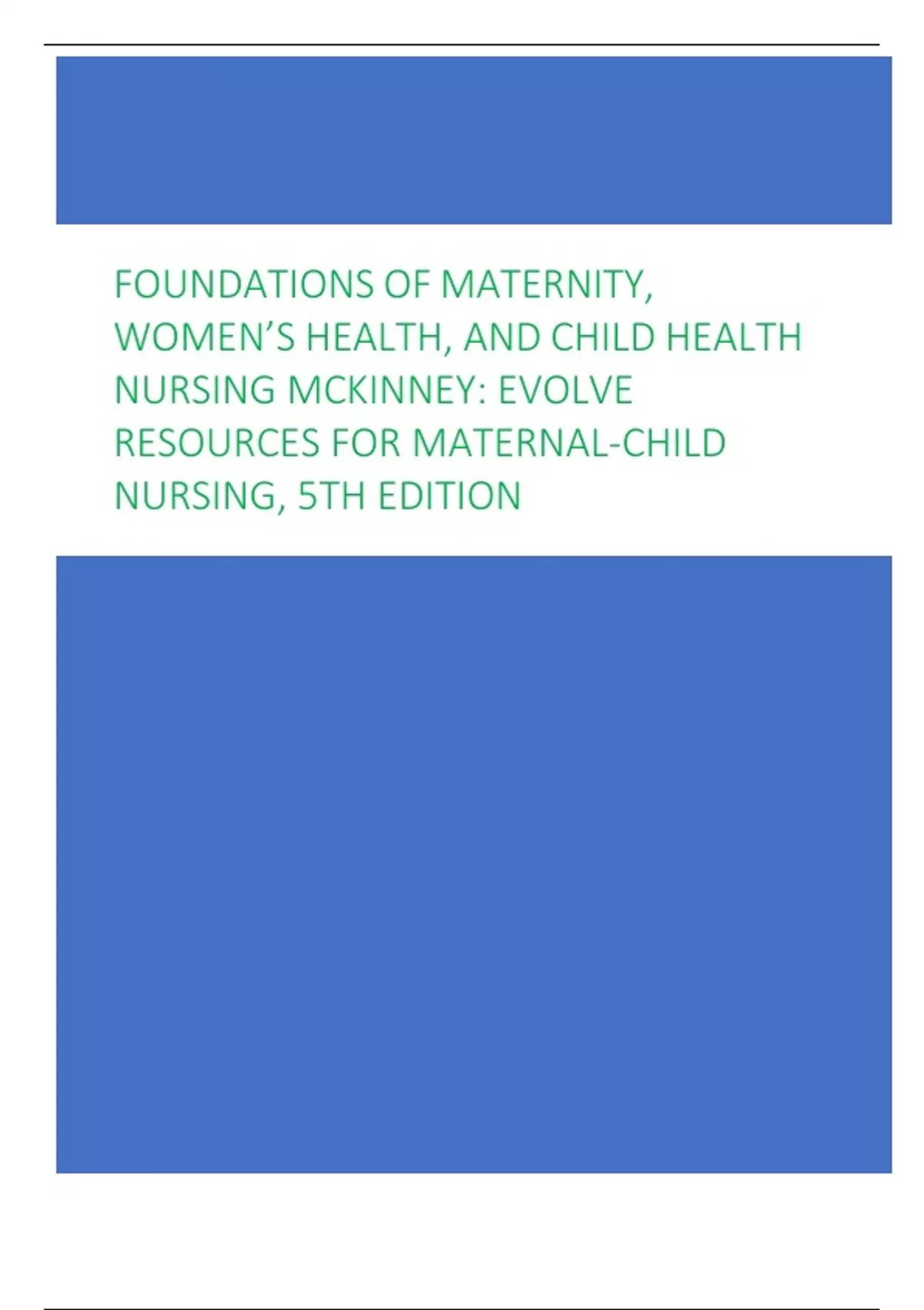FOUNDATIONS OF MATERNITY, WOMEN’S HEALTH, AND CHILD HEALTH NURSING MCKINNEY: EVOLVE RESOURCES FOR MATERNAL-CHILD NURSING, 5TH EDITION