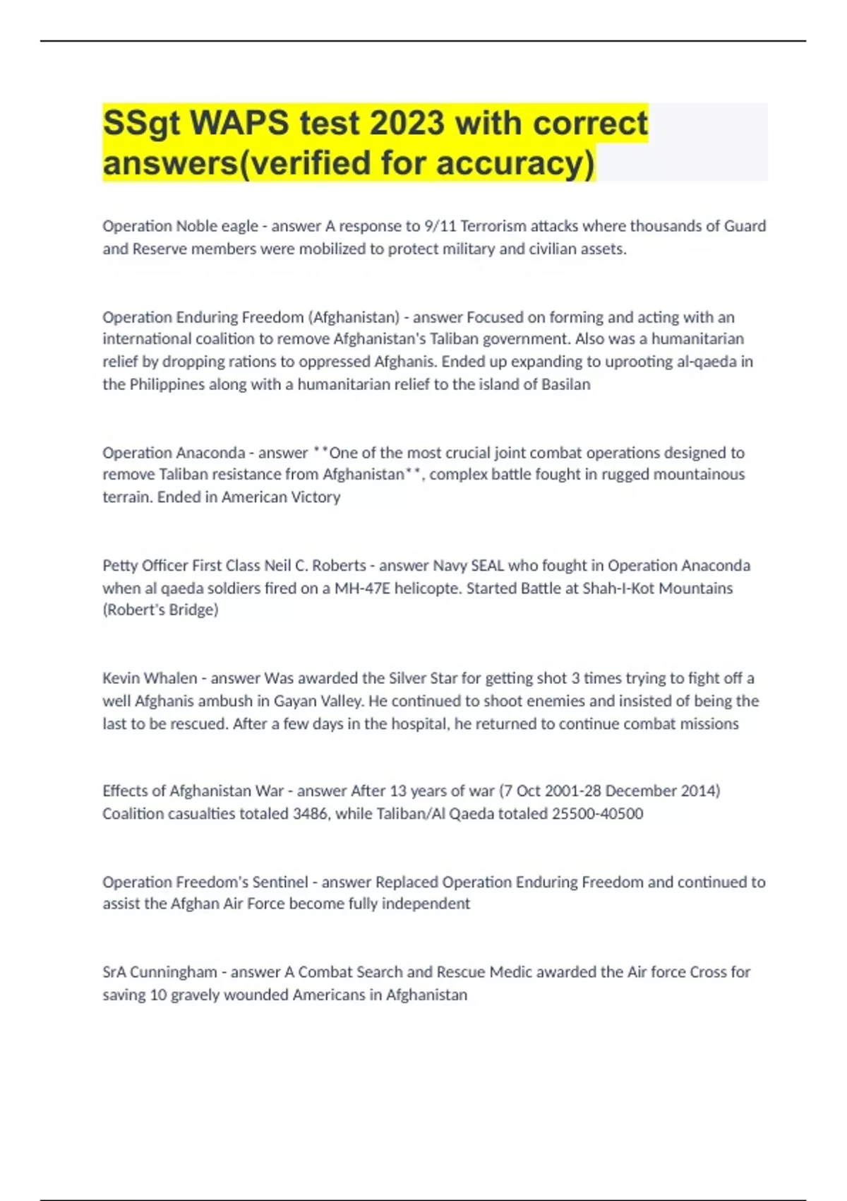 SSgt WAPS test 2023 with correct answers(verified for accuracy).