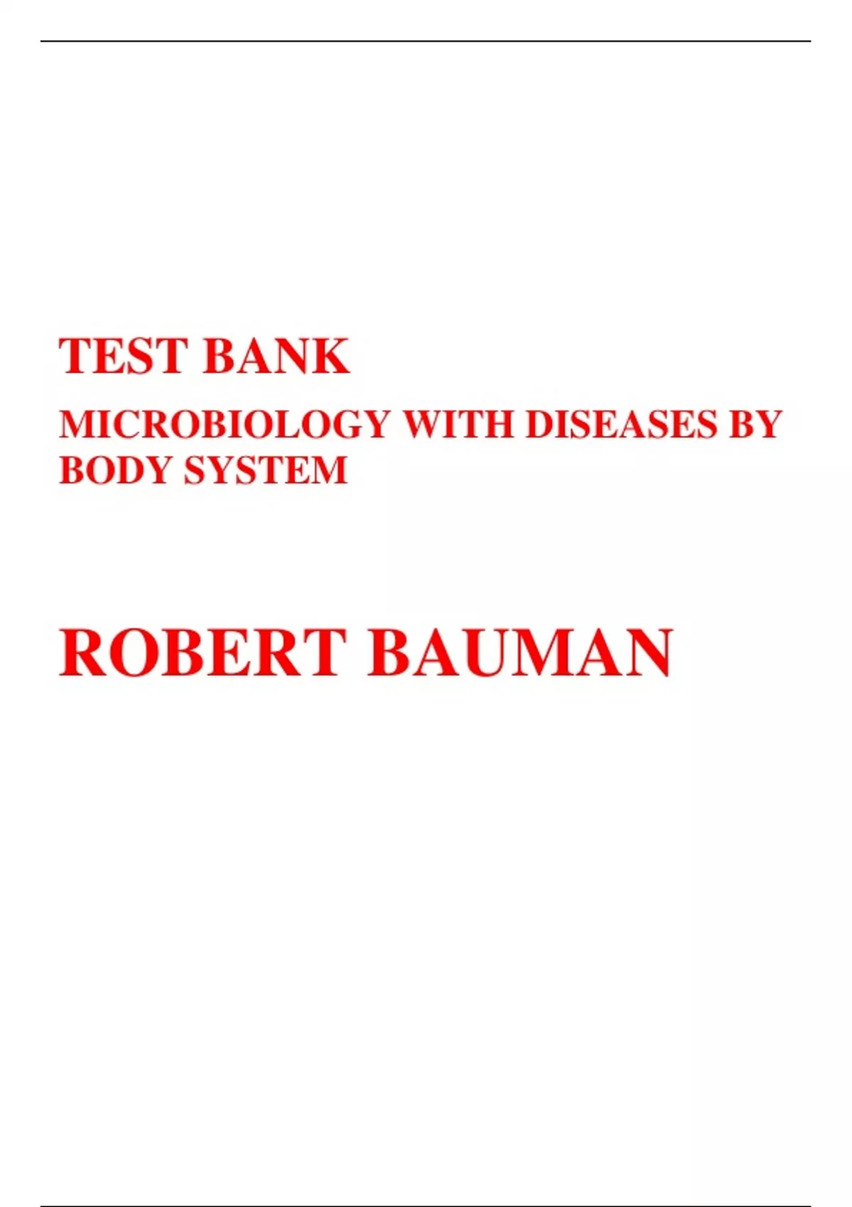 TEST BANK Microbiology with Diseases by Body System Robert Bauman (5th edition) All correct Answers