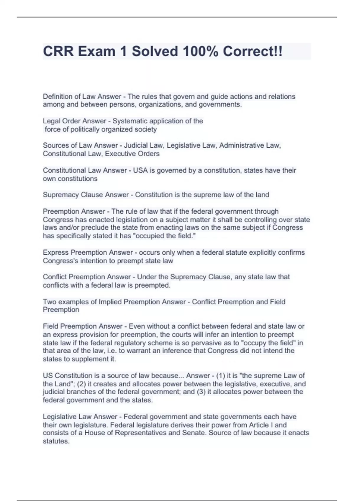 CRR Exam 1 Solved 100% Correct!!