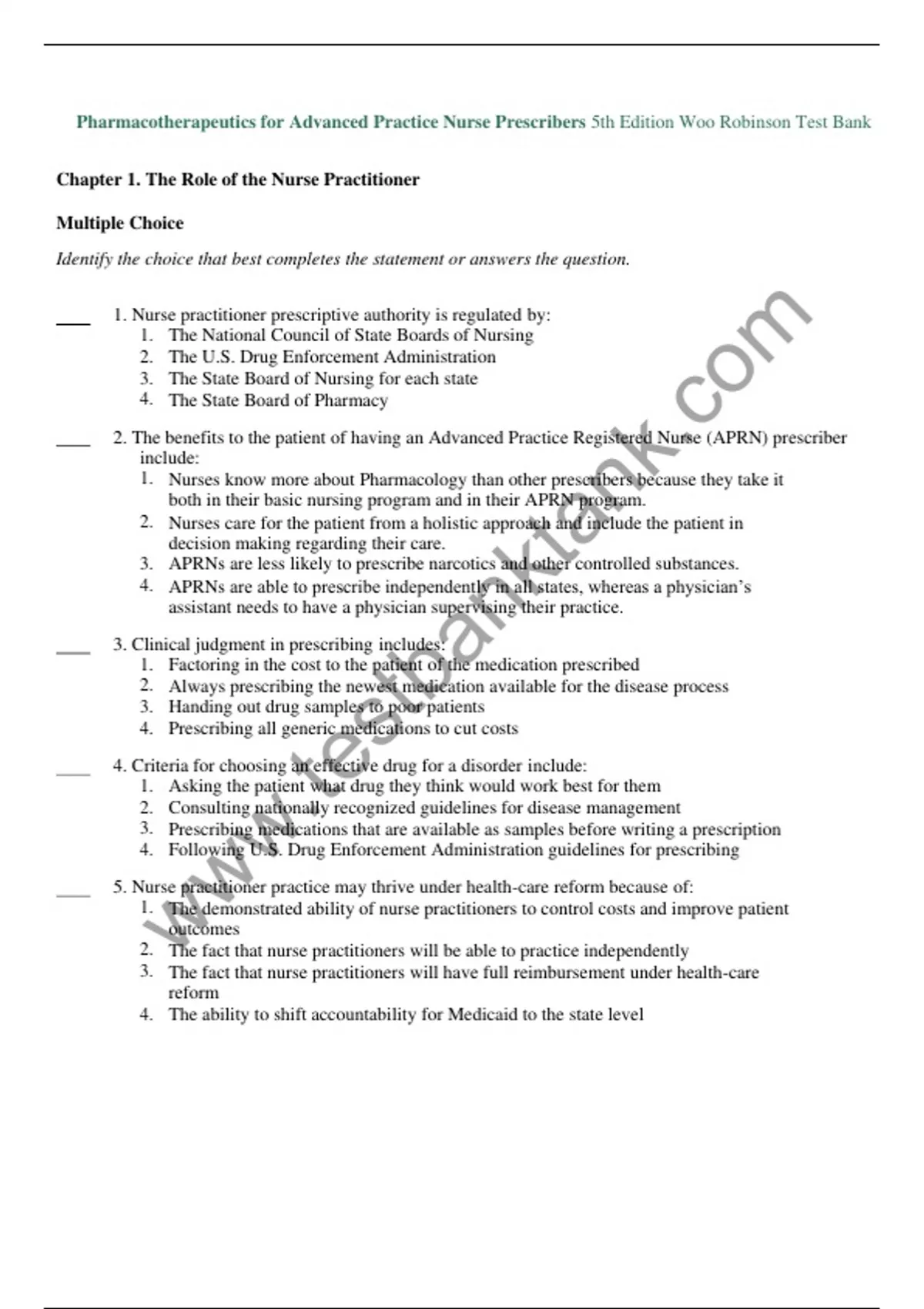 test bank complete for pharmacotherapeutics