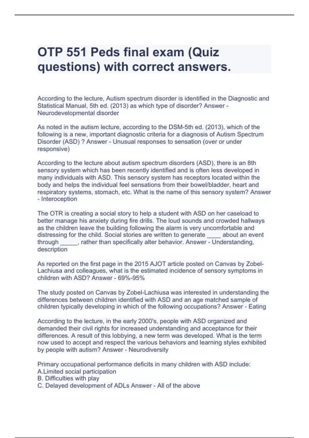OTP 551 Peds final exam (Quiz questions) with correct answers.