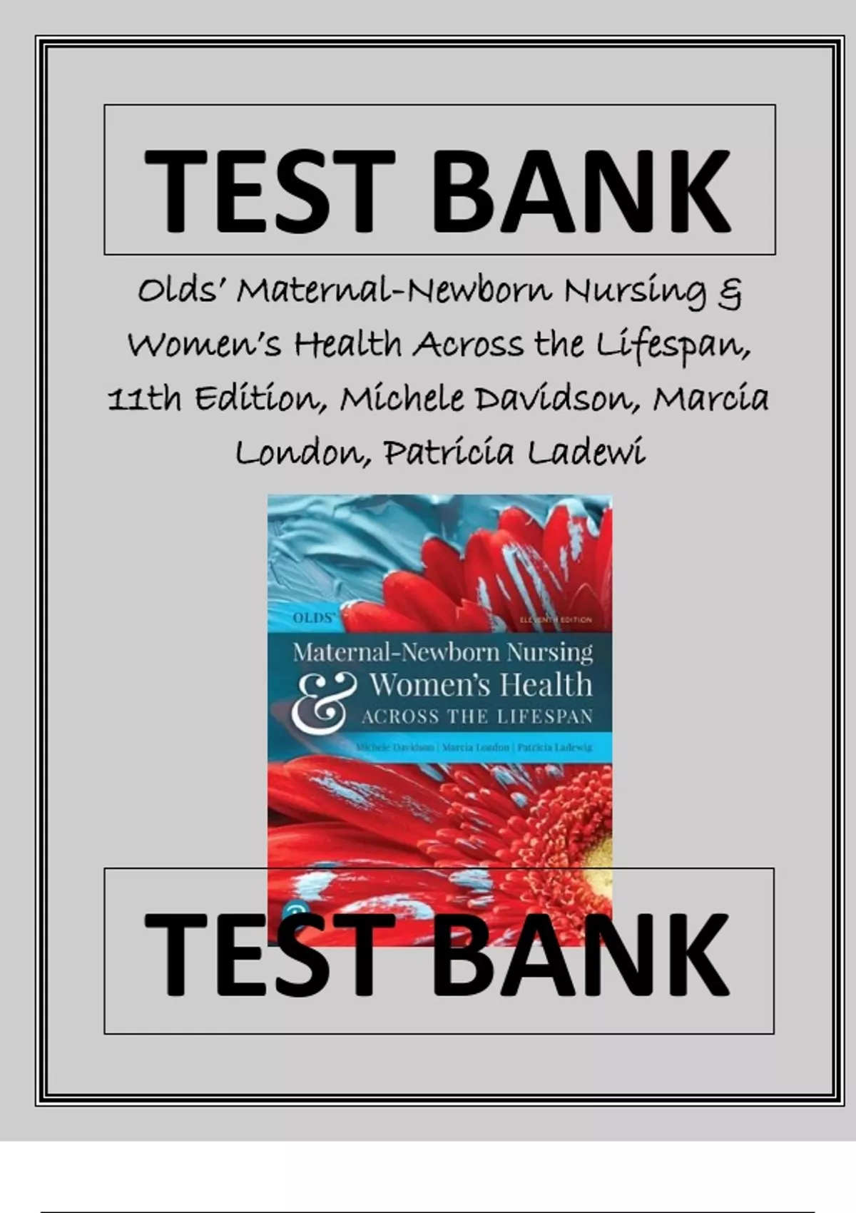 Test Bank For Olds’ Maternal-Newborn Nursing & Women’s Health Across the Lifespan, 11th Edition, Michele Davidson, Marcia London, Patricia Ladewi Latest Review 2023 Practice Questions and Answers, 100% Correct with Explanations, Highly Recommended, Downlo