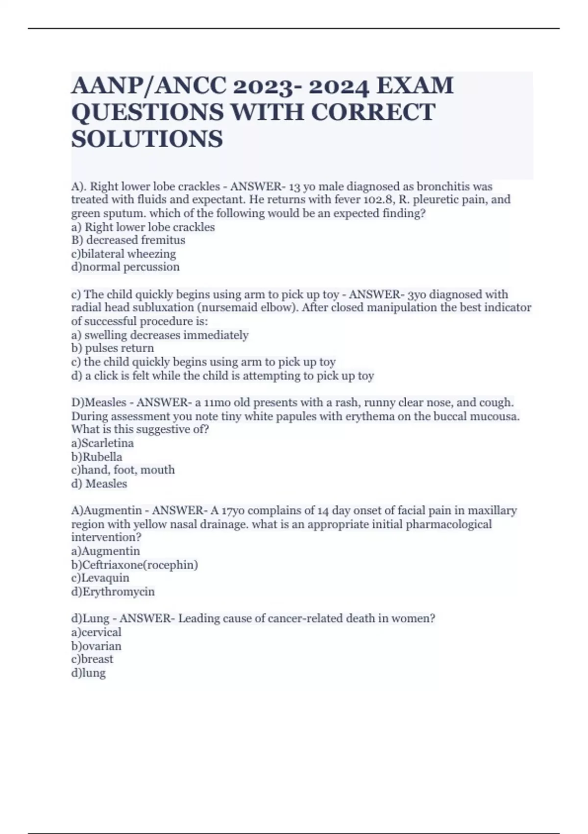 PACKAGE DEAL FOR ANCC FNP BOARD 2023-2024 EXAM LATEST REAL EXAM 200+ QUESTIONS AND CORRECT ANSWERS WITH RATIONALES|ALREDY GRADED A+