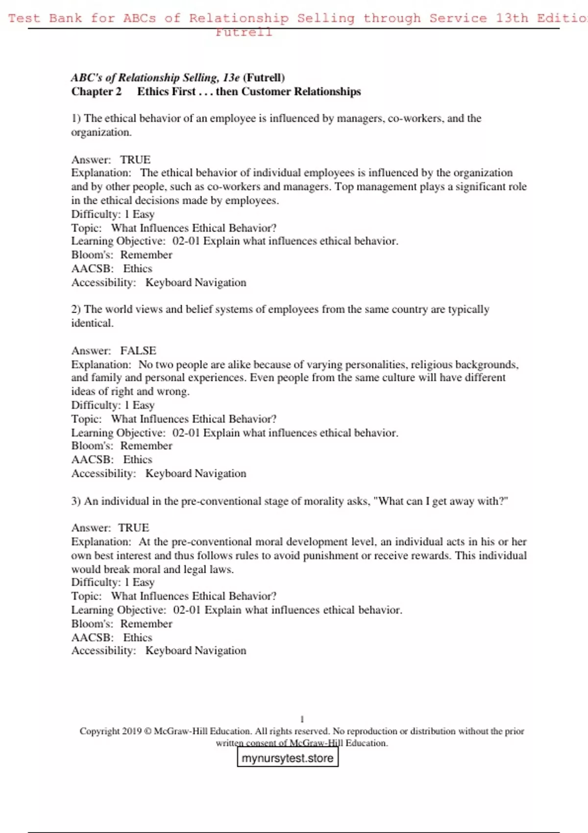 , Test Bank for ABCs of Relationship Selling through Service 13th Edition