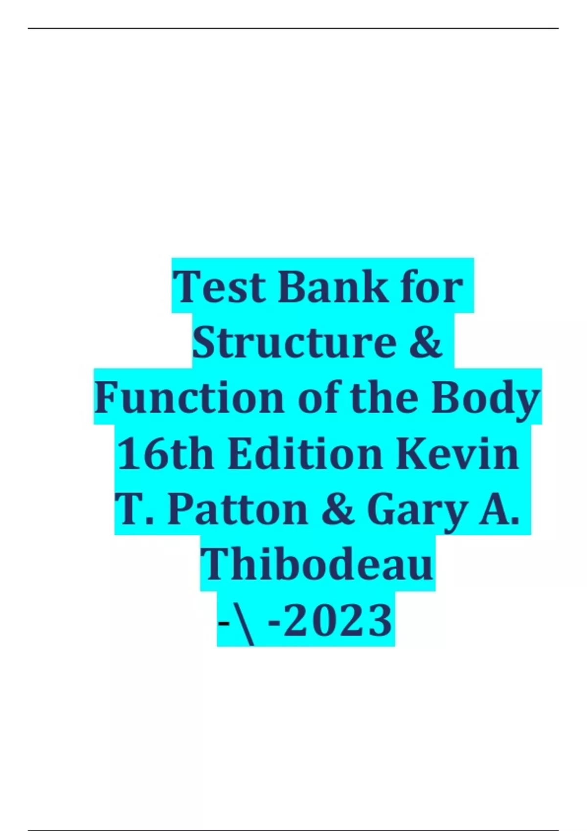 Test Bank for Structure & Function of the Body 16th Edition Kevin T. Patton & Gary A. Thibodeau - -2023