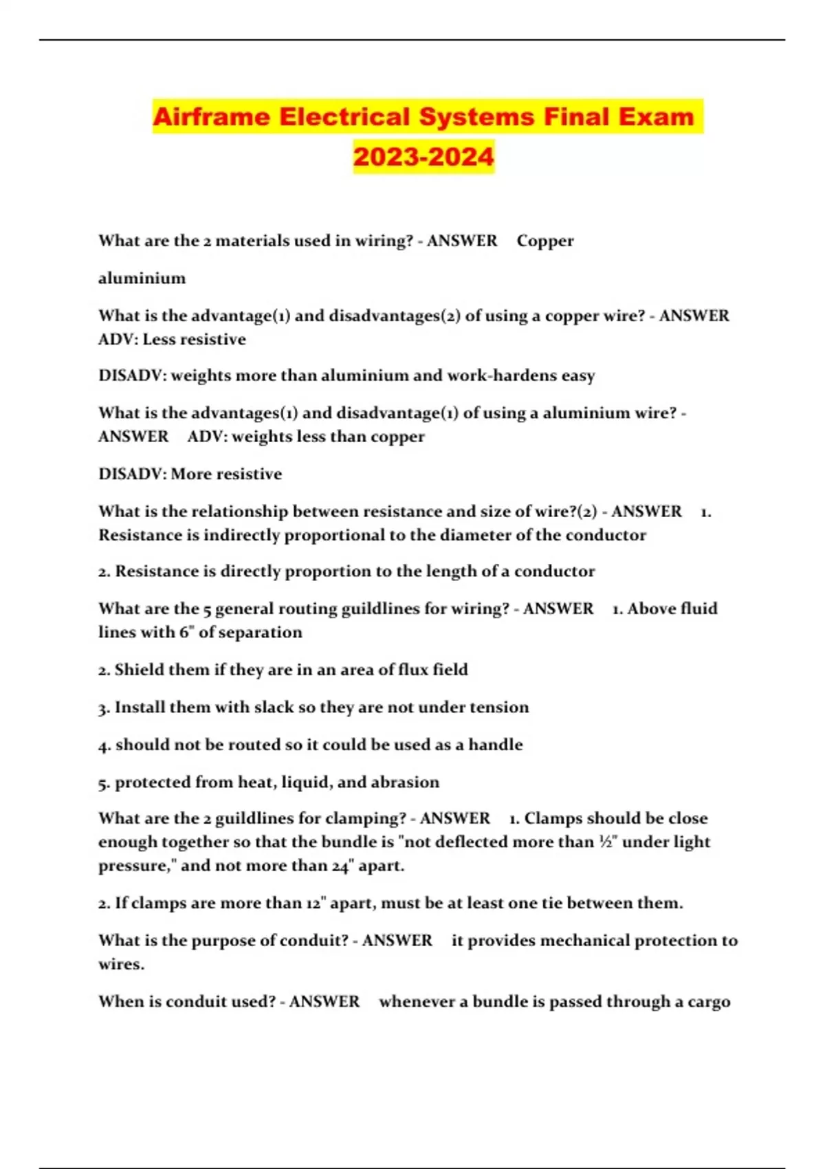 Airframe Electrical Systems Final Exam ...