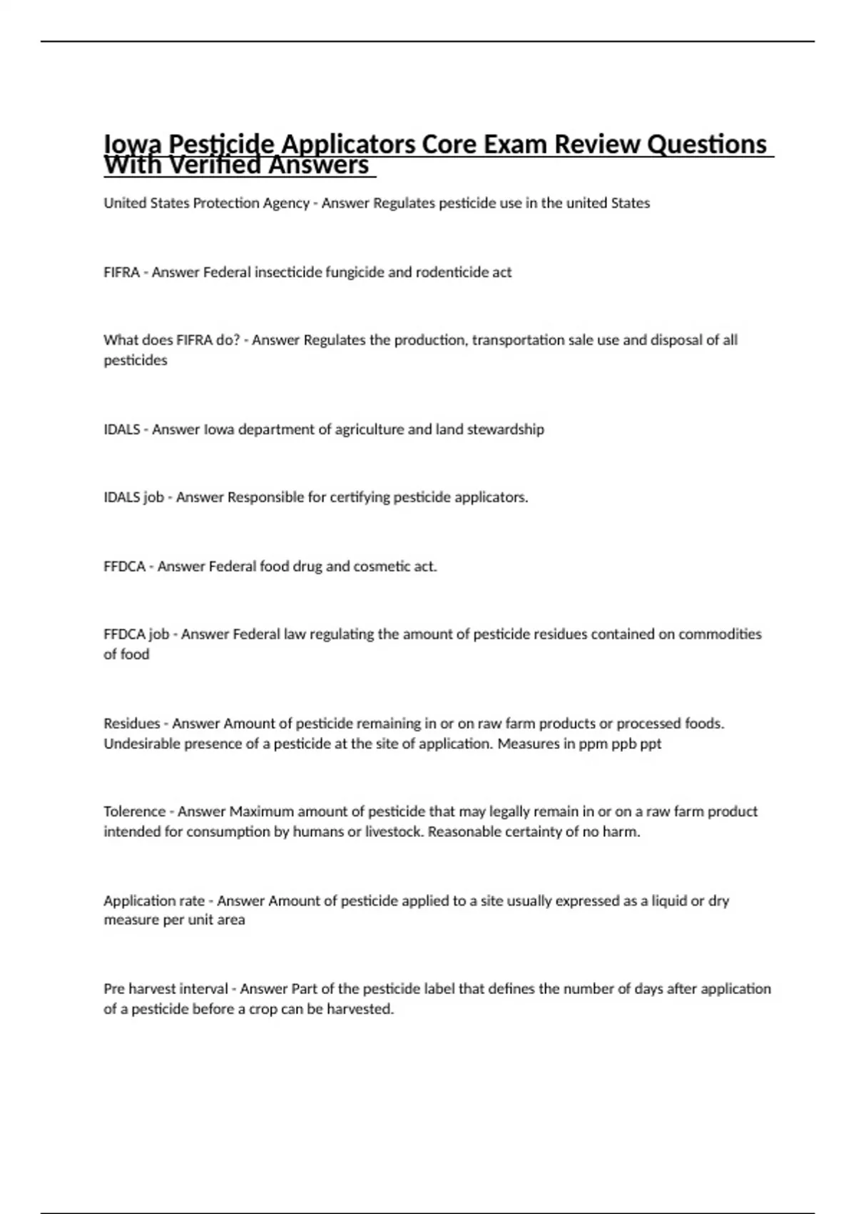 Iowa Pesticide Applicators Core Exam Review Questions With Verified Answers