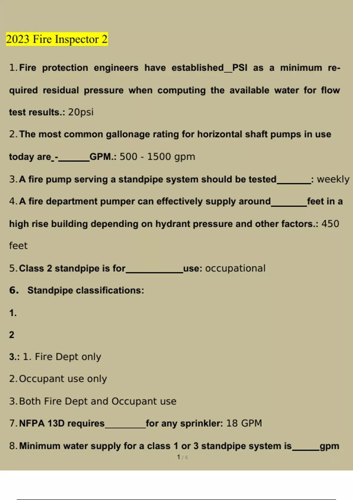 2023 Fire Inspector 2 Latest 2023/2024[100% correct answers & explanations]