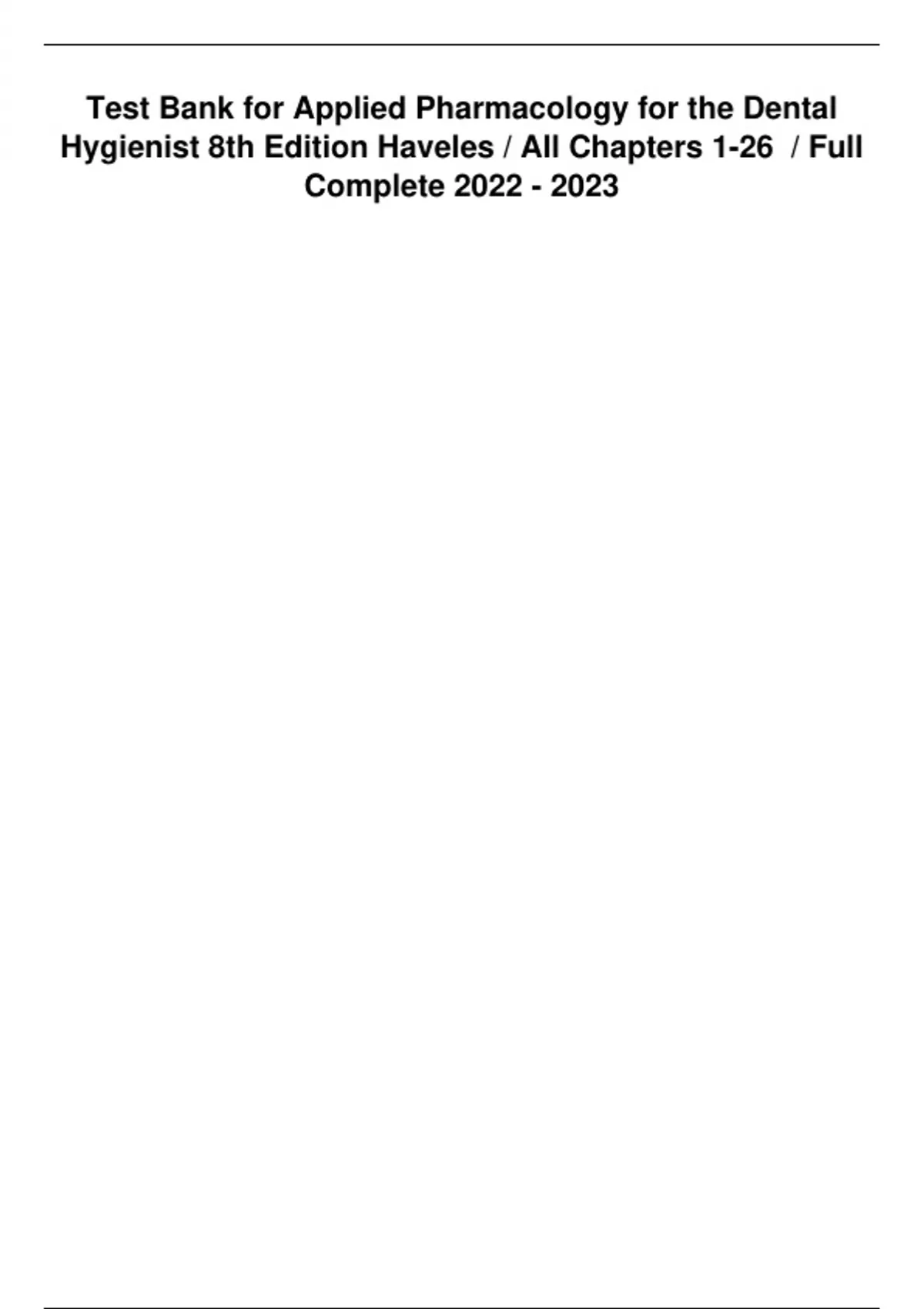 Test Bank Applied Pharmacology for the Dental Hygienist 8th Edition