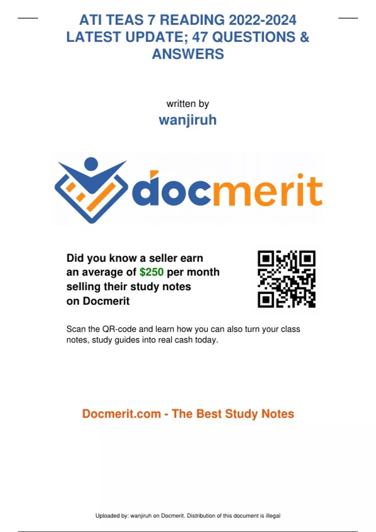 Exam of 16 pages for the course ATI TEAS 7 at Devry University (ATI TEAS 7 Reading)
