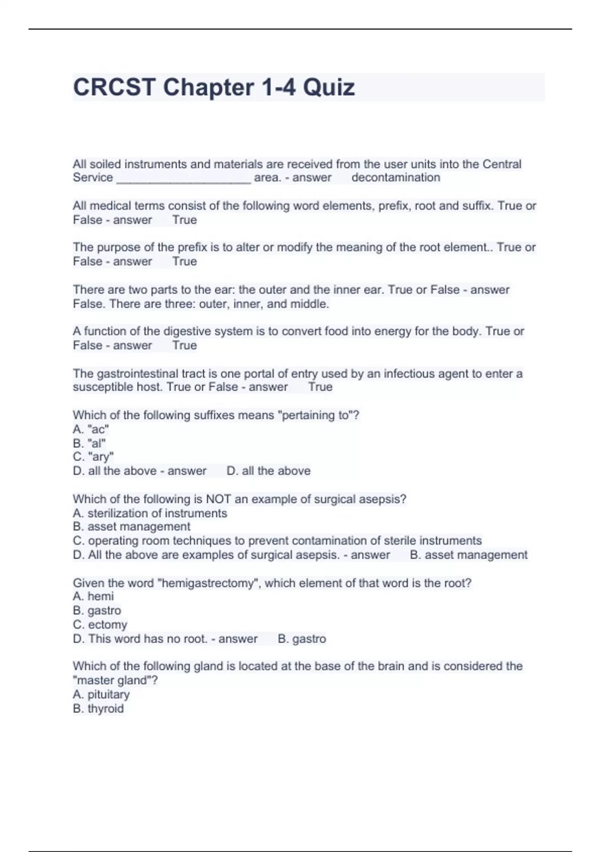 CRCST Chapter 1-4 Quiz Questions and Answers 2023