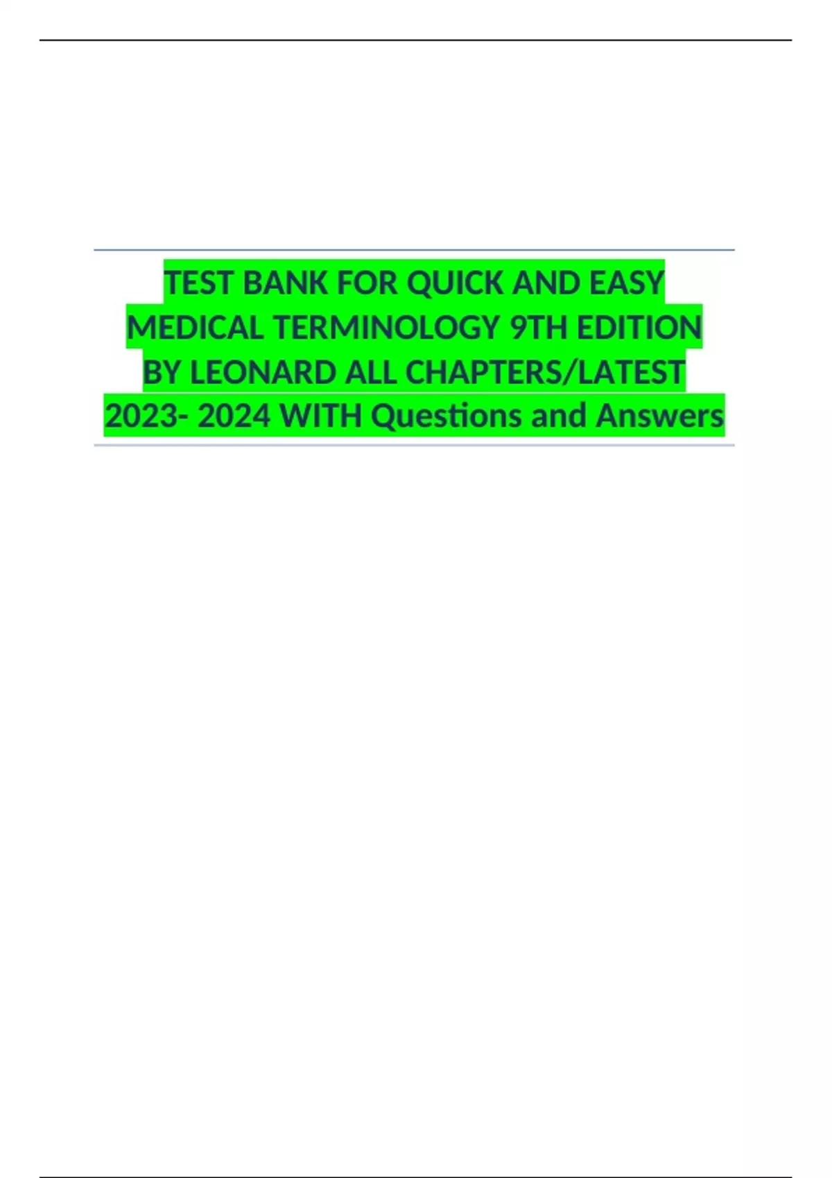 TEST BANK FOR QUICK AND EASY MEDICAL TERMINOLOGY 9TH EDITION BY LEONARD ALL CHAPTERS