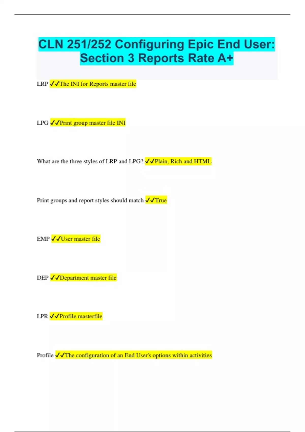 CLN 251/252 Configuring Epic End User: Section 3 Reports Rate A+