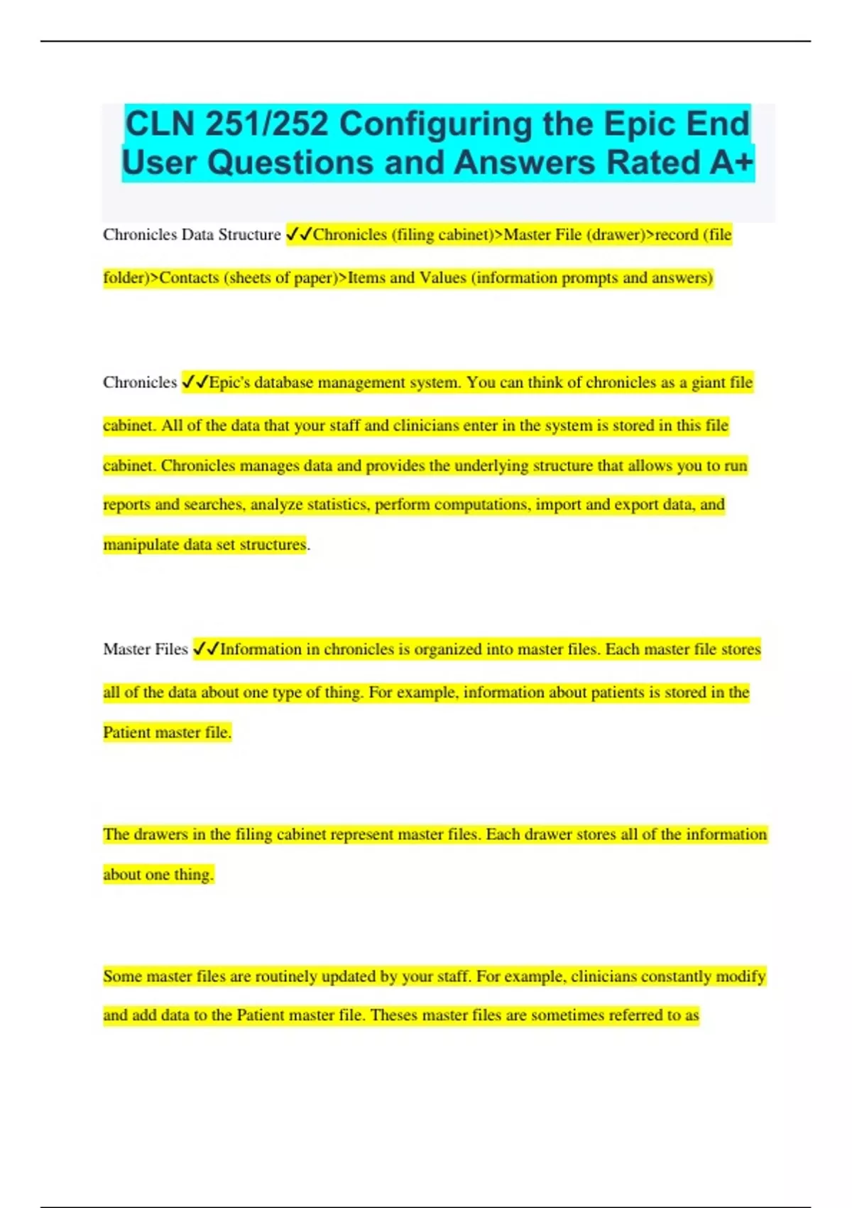 CLN 251/252 Configuring the Epic End User Questions and Answers Rated A+