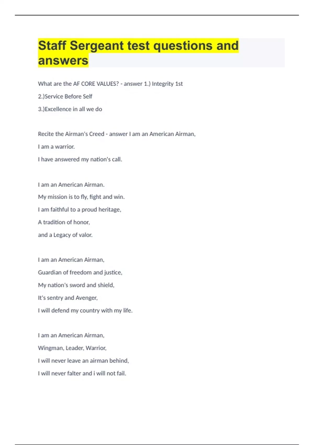 Staff Sergeant test questions and answers.