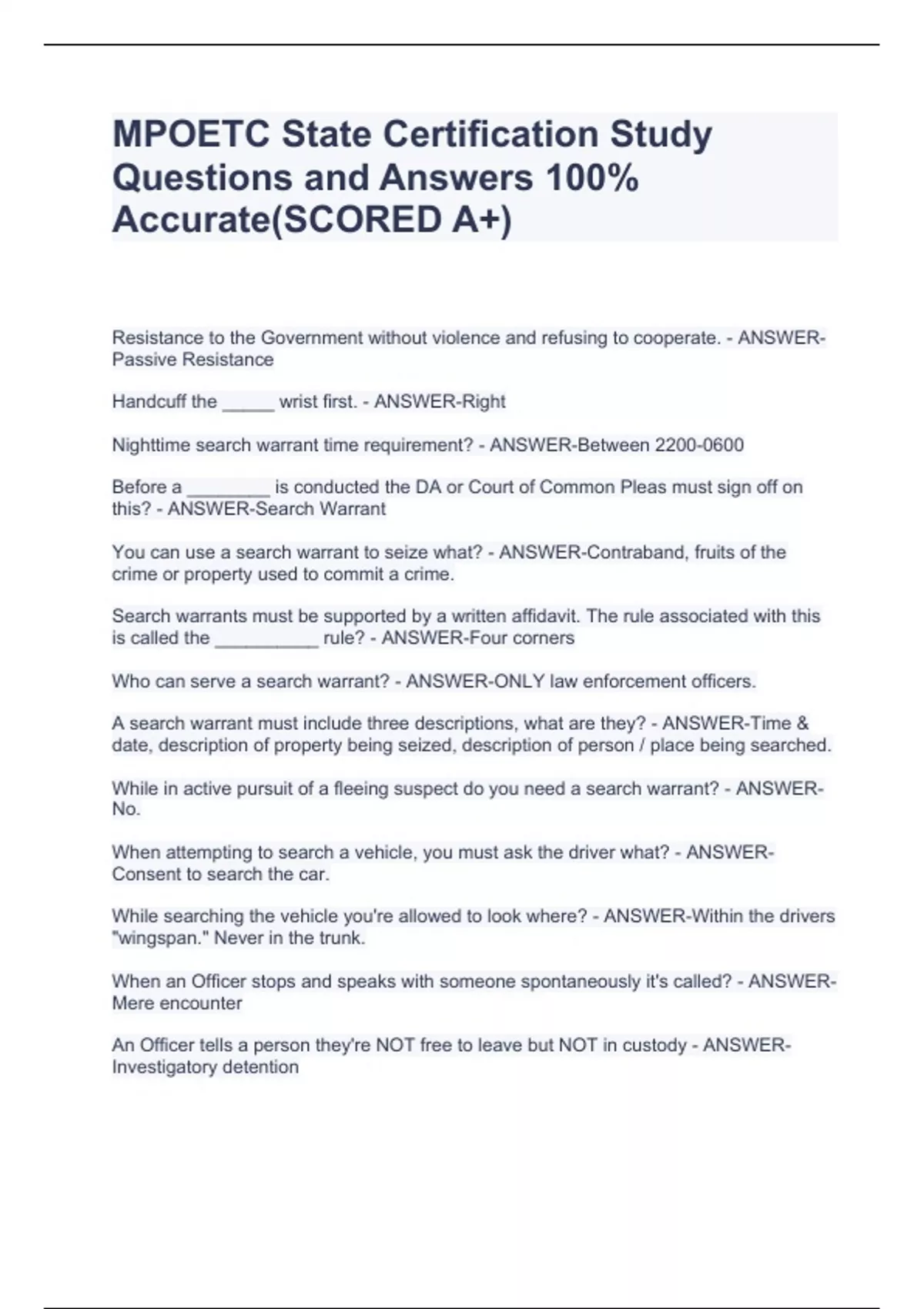 MPOETC State Certification Study Questions and Answers 100% Accurate(SCORED A+)