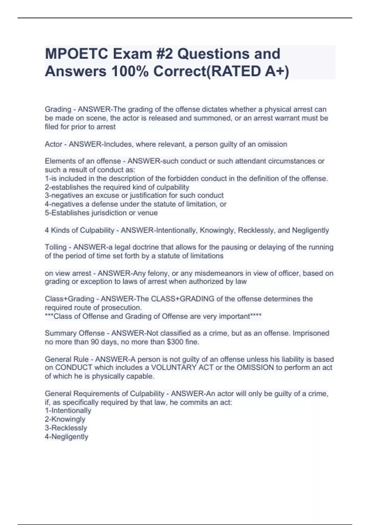 MPOETC Exam #2 Questions and Answers 100% Correct(RATED A+)