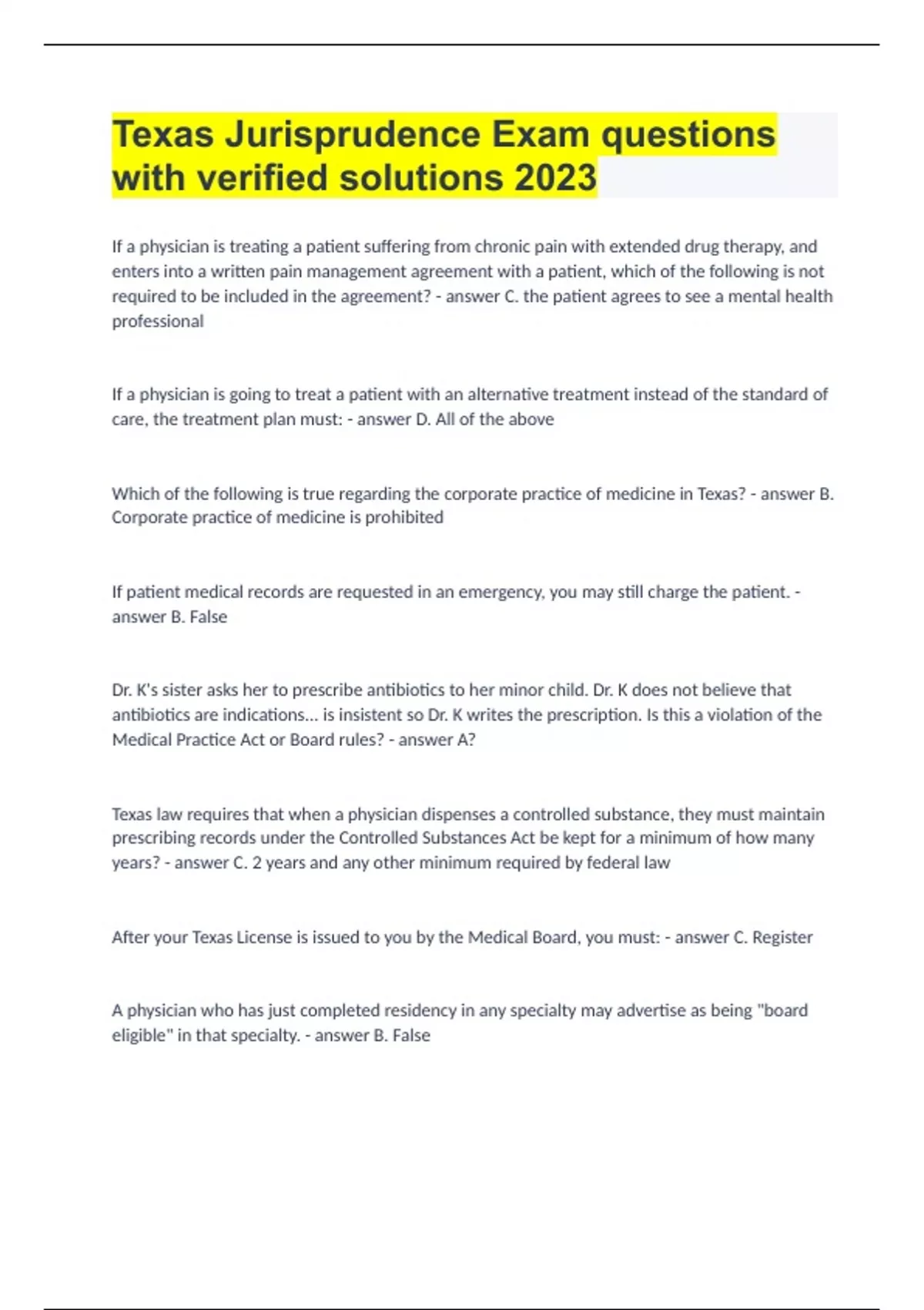 Texas Jurisprudence Exam questions with verified solutions 2023.