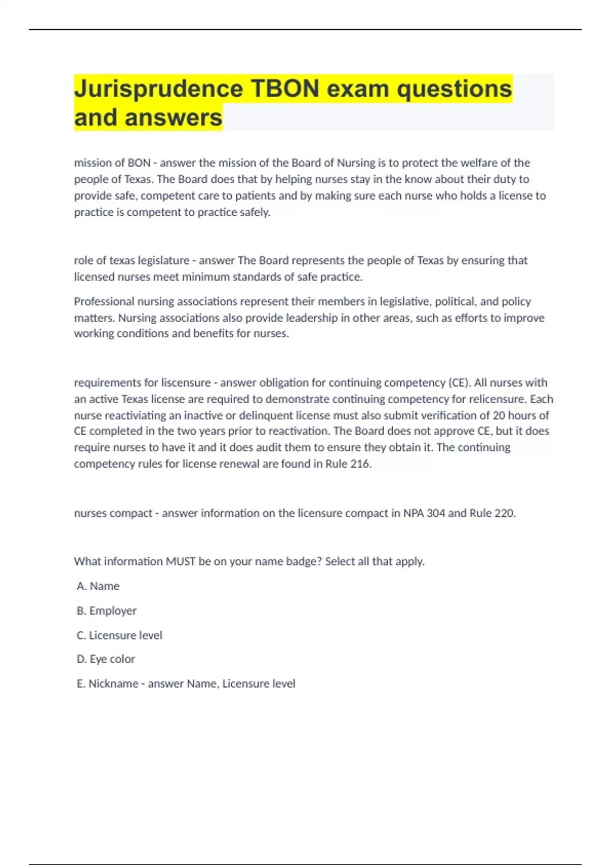 TEXAS NURSING JURISPRUDENCE BUNDLED EXAMS 2023/24