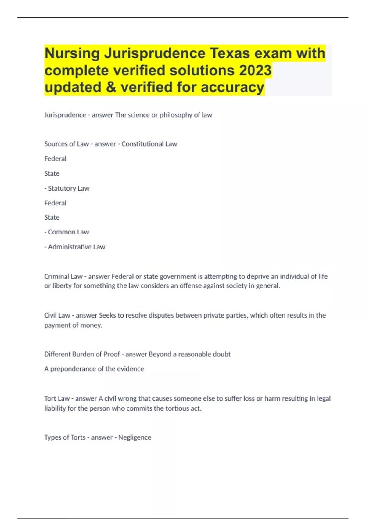 Nursing Jurisprudence Texas exam with complete verified solutions 2023 updated & verified for accuracy