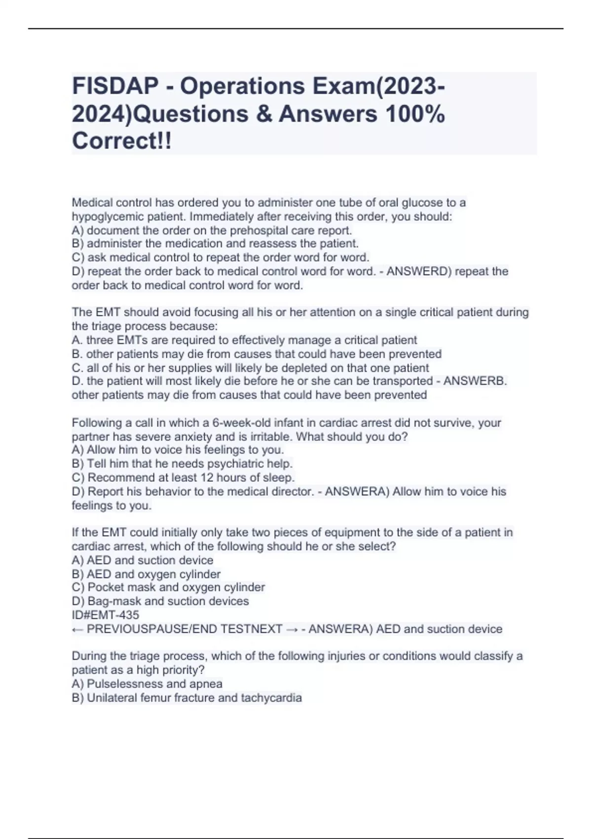 FISDAP - Operations Exam()Questions & Answers 100% Correct!!