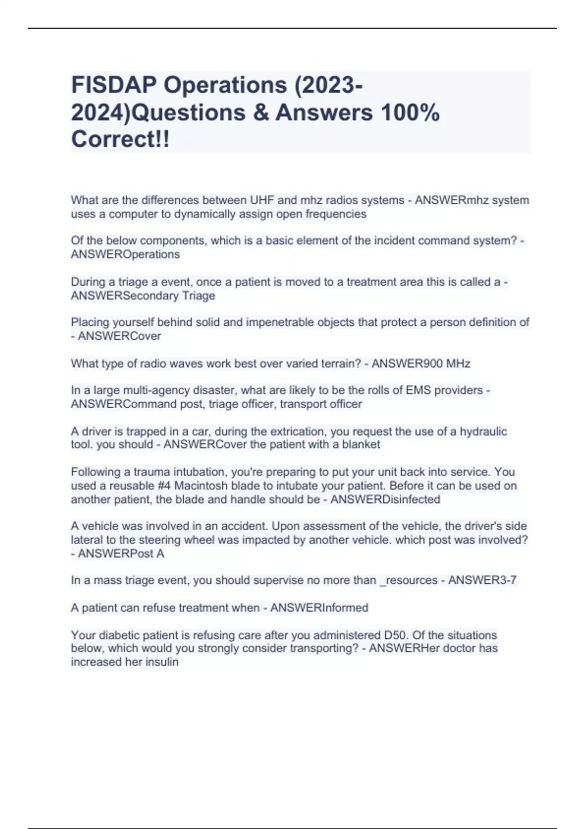 FISDAP Operations ()Questions & Answers 100% Correct!!