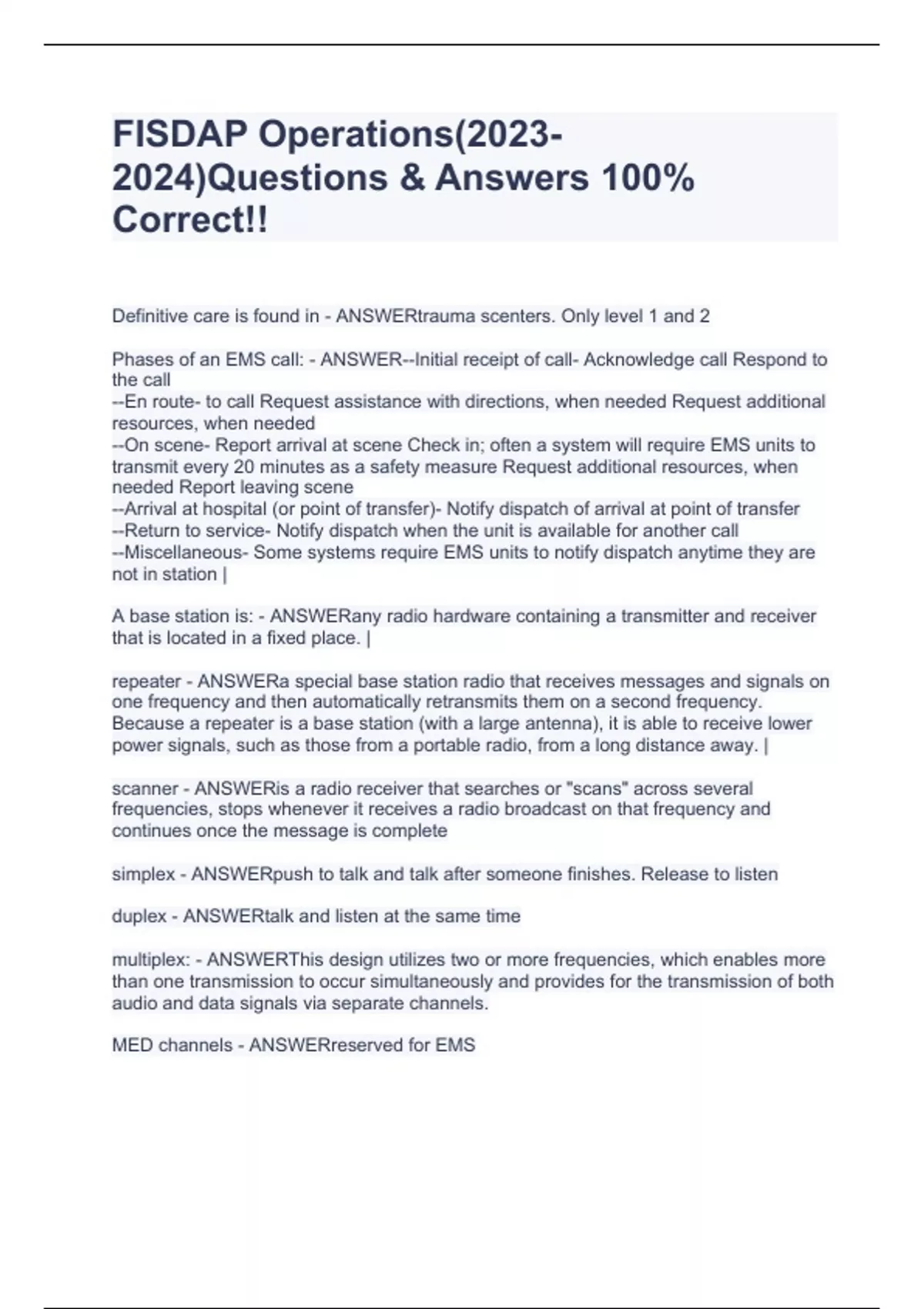 FISDAP Operations()Questions & Answers 100% Correct!!