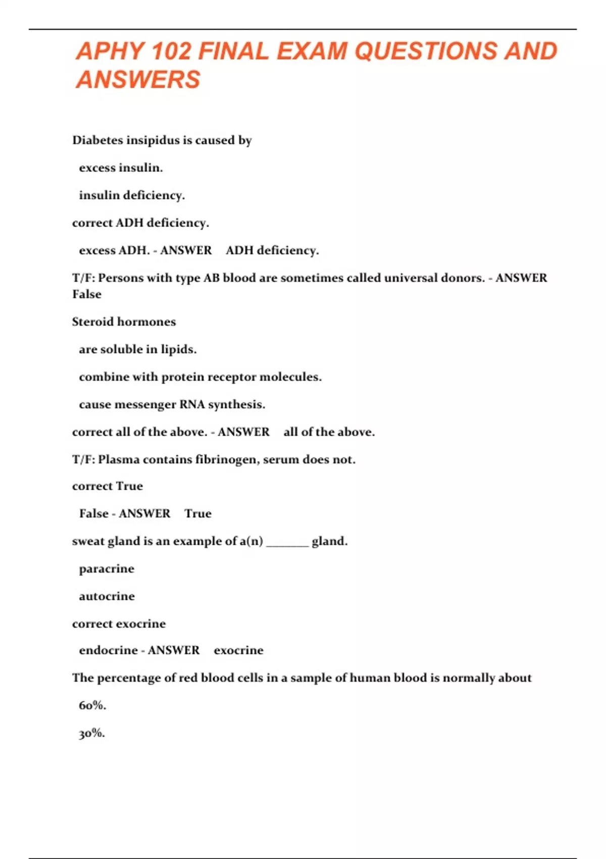 aphy 102 final exam questions with 100 verified s
