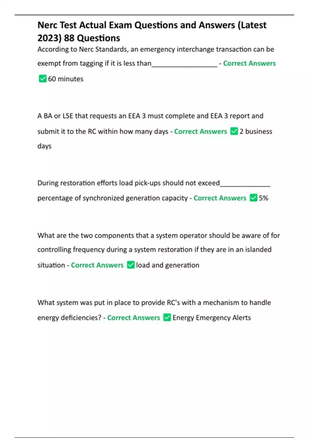 Nerc Test Actual Exam Questions and Answers (Latest 2023) 88 Questions