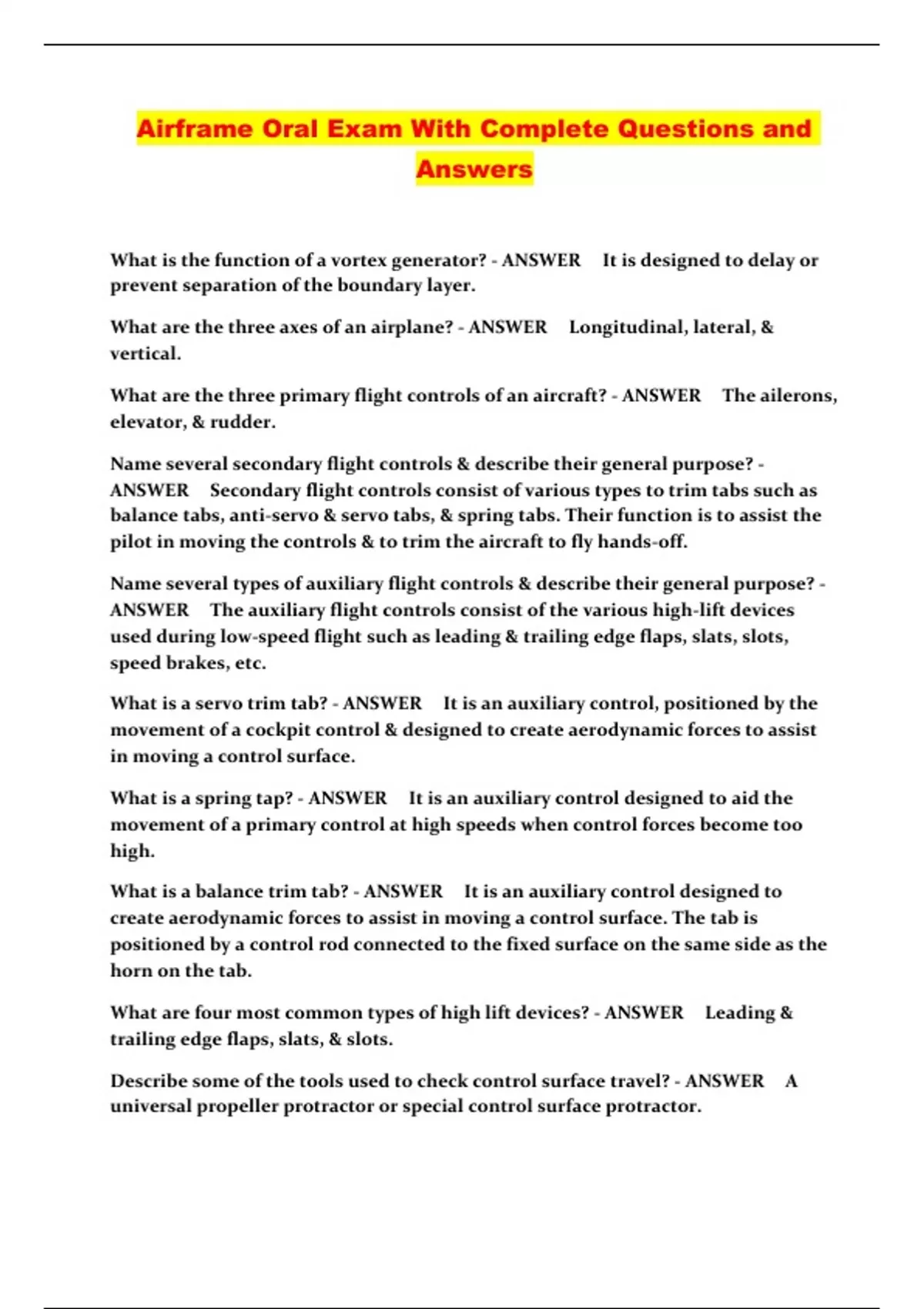 Airframe Oral Exam With Complete Questions and Answers....