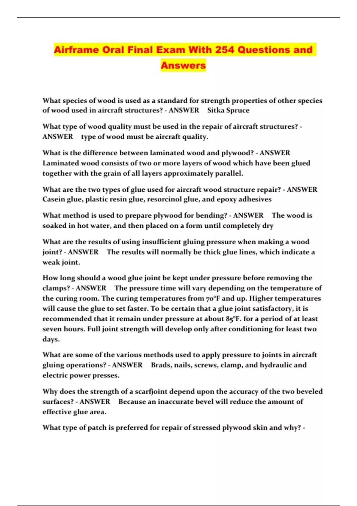 Airframe Oral Final Exam With 254 Questions and Answers...