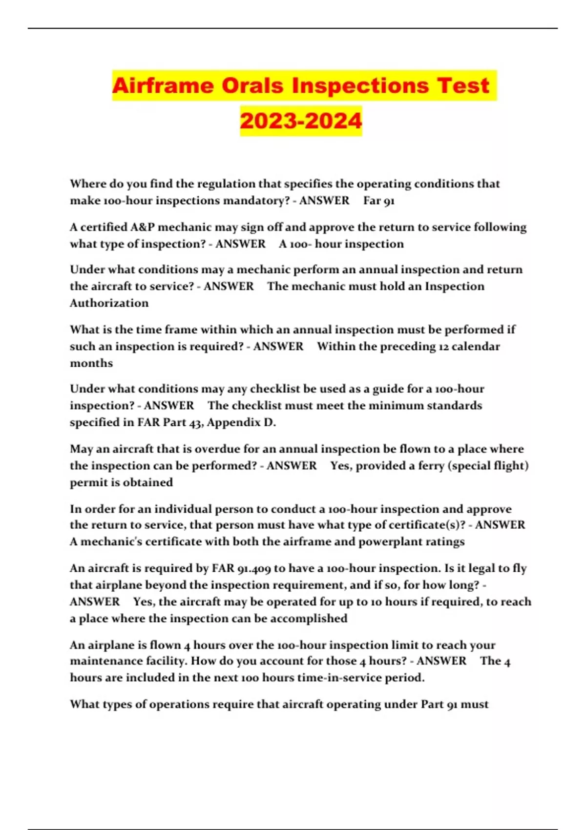 Airframe Orals Inspections Test ...
