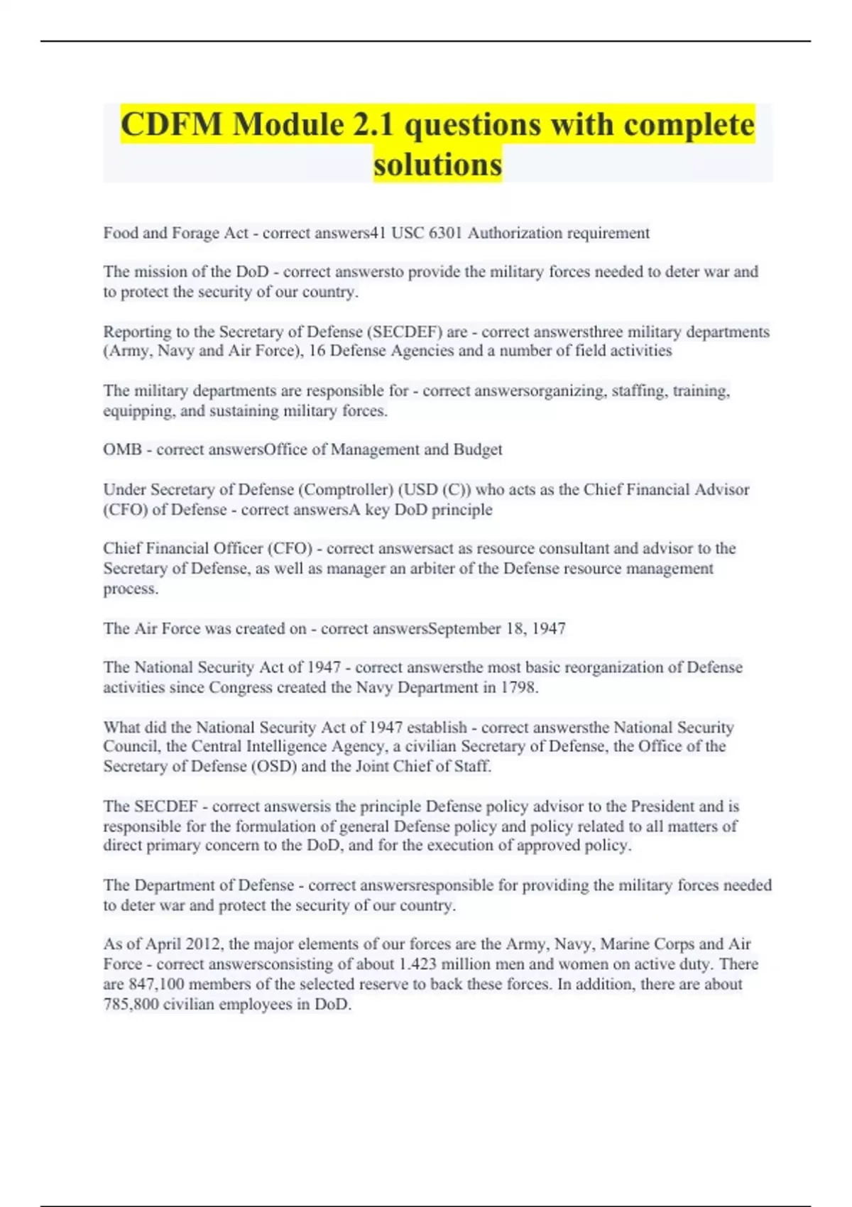 cdfm module 21 questions with complete solutions