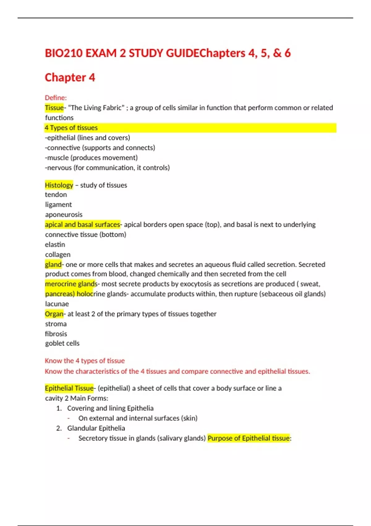 Summary BIO210 EXAM 2 STUDY GUIDE Chapters 4, 5, & 6
