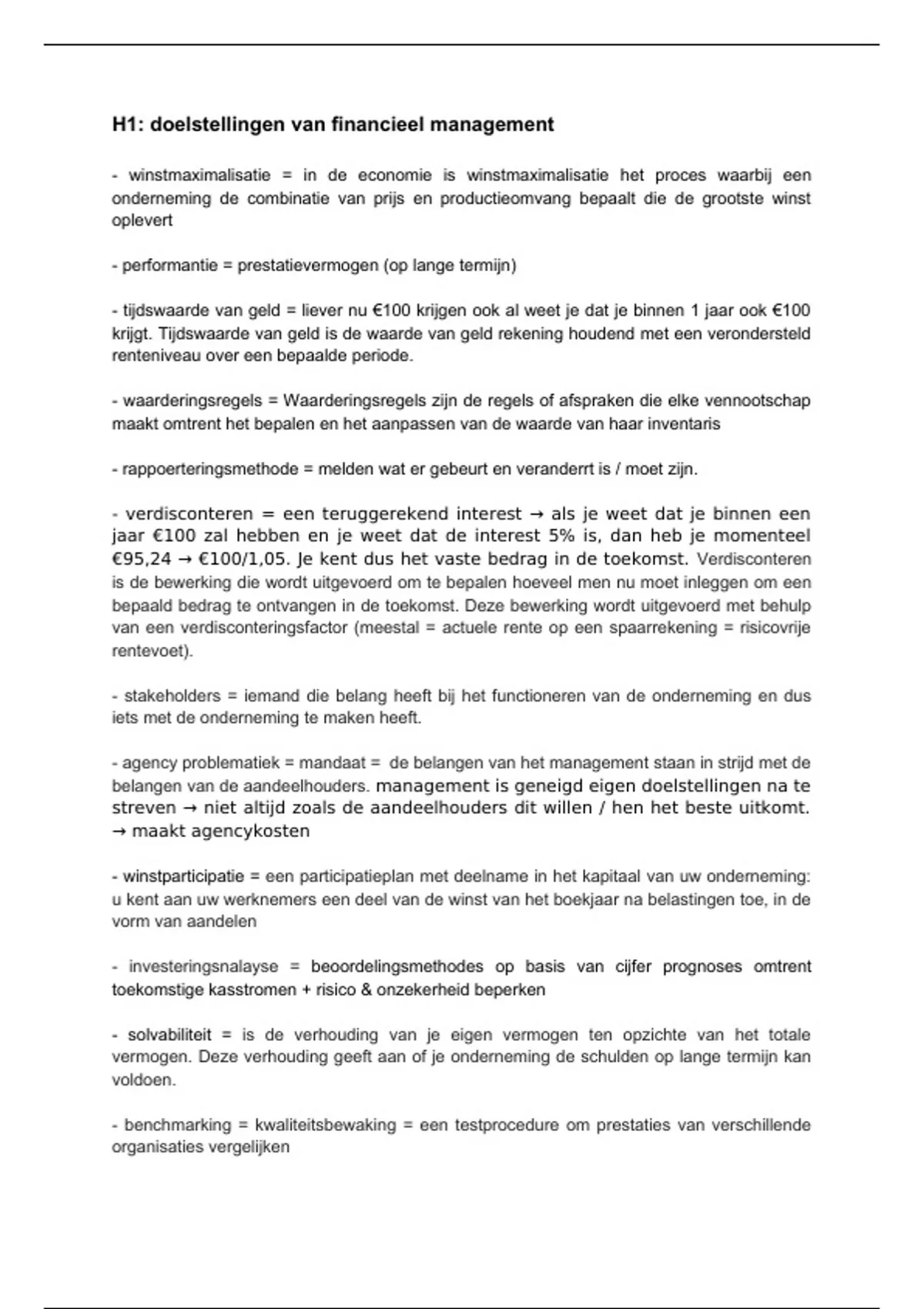 H1: doelstellingen van financieel management