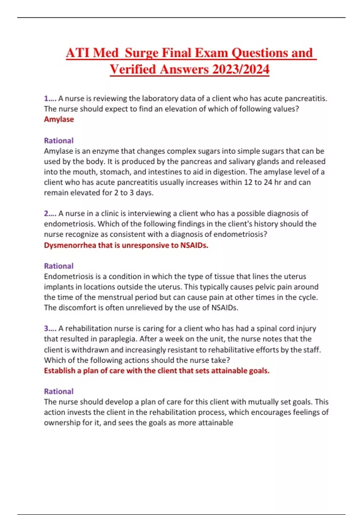ATI Med Surge Final Exam Questions and Verified Answers 2023/2024