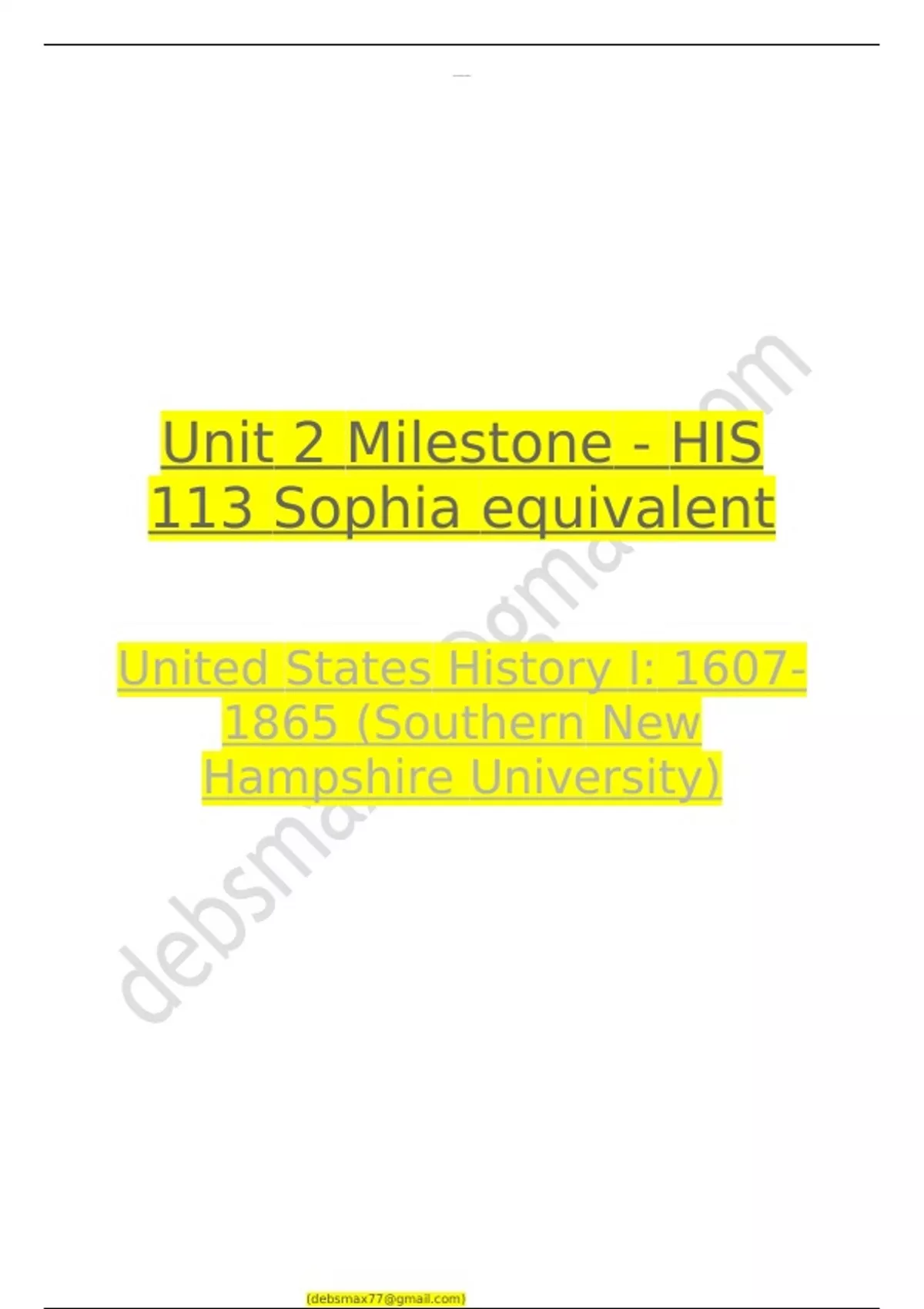 Sophia US History Unit 2 Milestone - HIS 113 Sophia equivalent Latest Update 2023