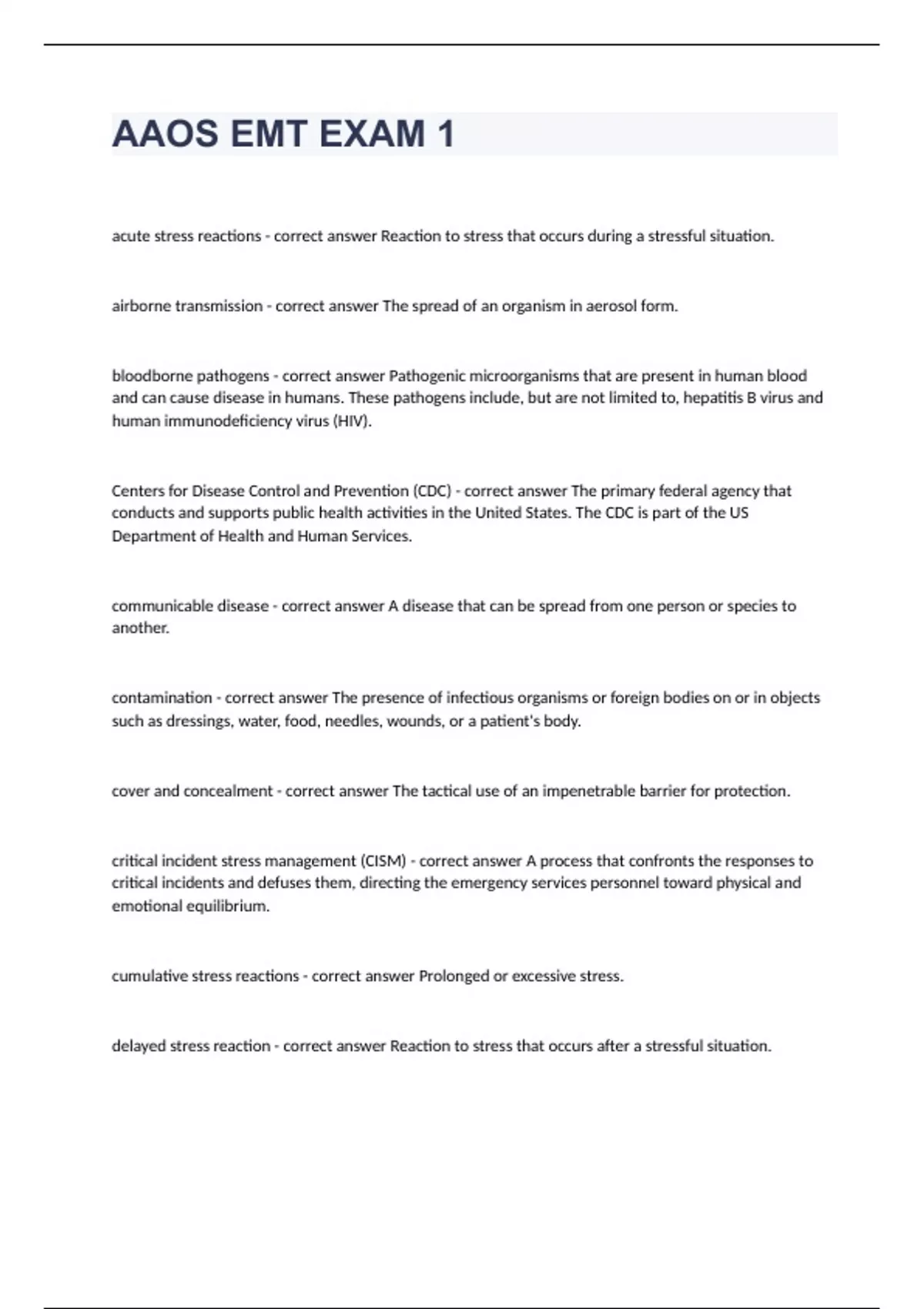AAOS EMT EXAM 1 questions with correct answers 2023