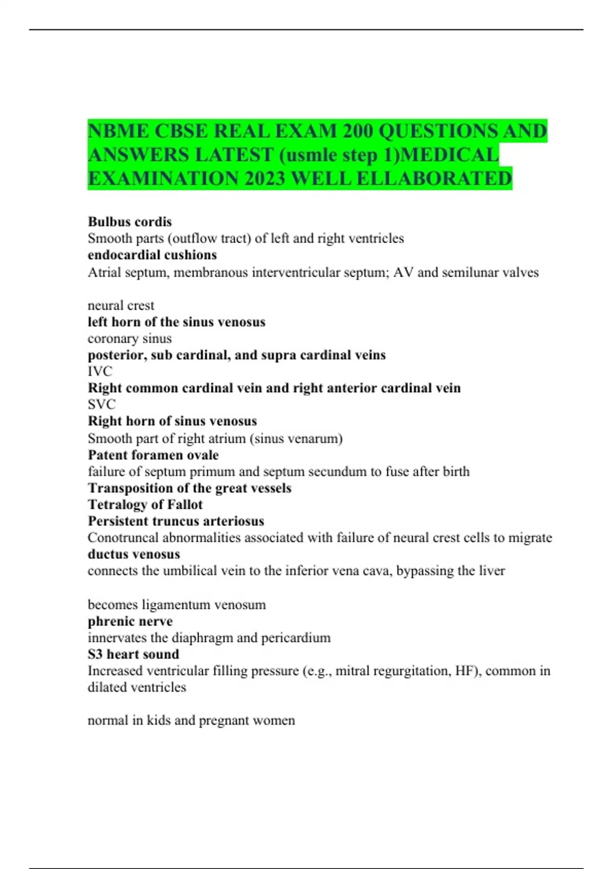NBME CBSE REAL EXAM 200 QUESTIONS AND ANSWERS LATEST (usmle step 1)MEDICAL EXAMINATION 2023 WELL ELABORATED