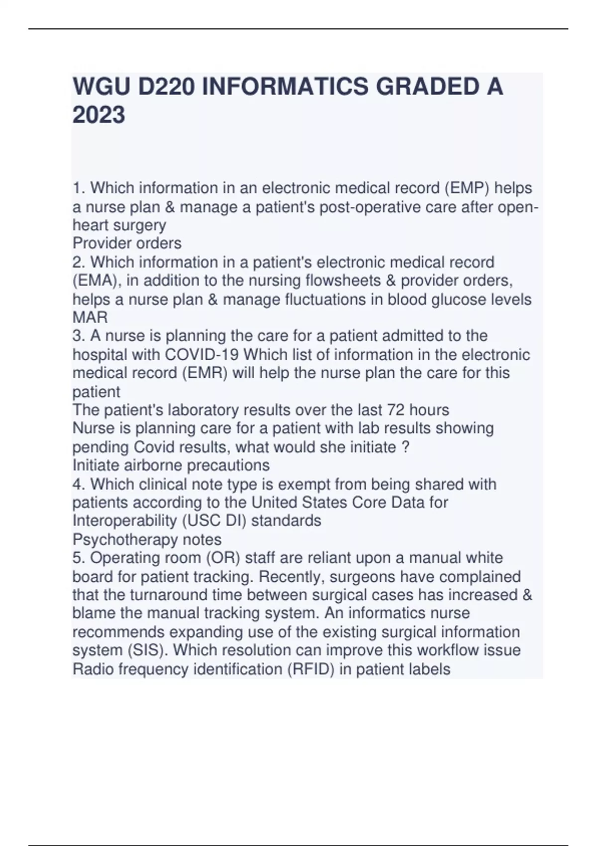 WGU D220 INFORMATICS GRADED A 2023