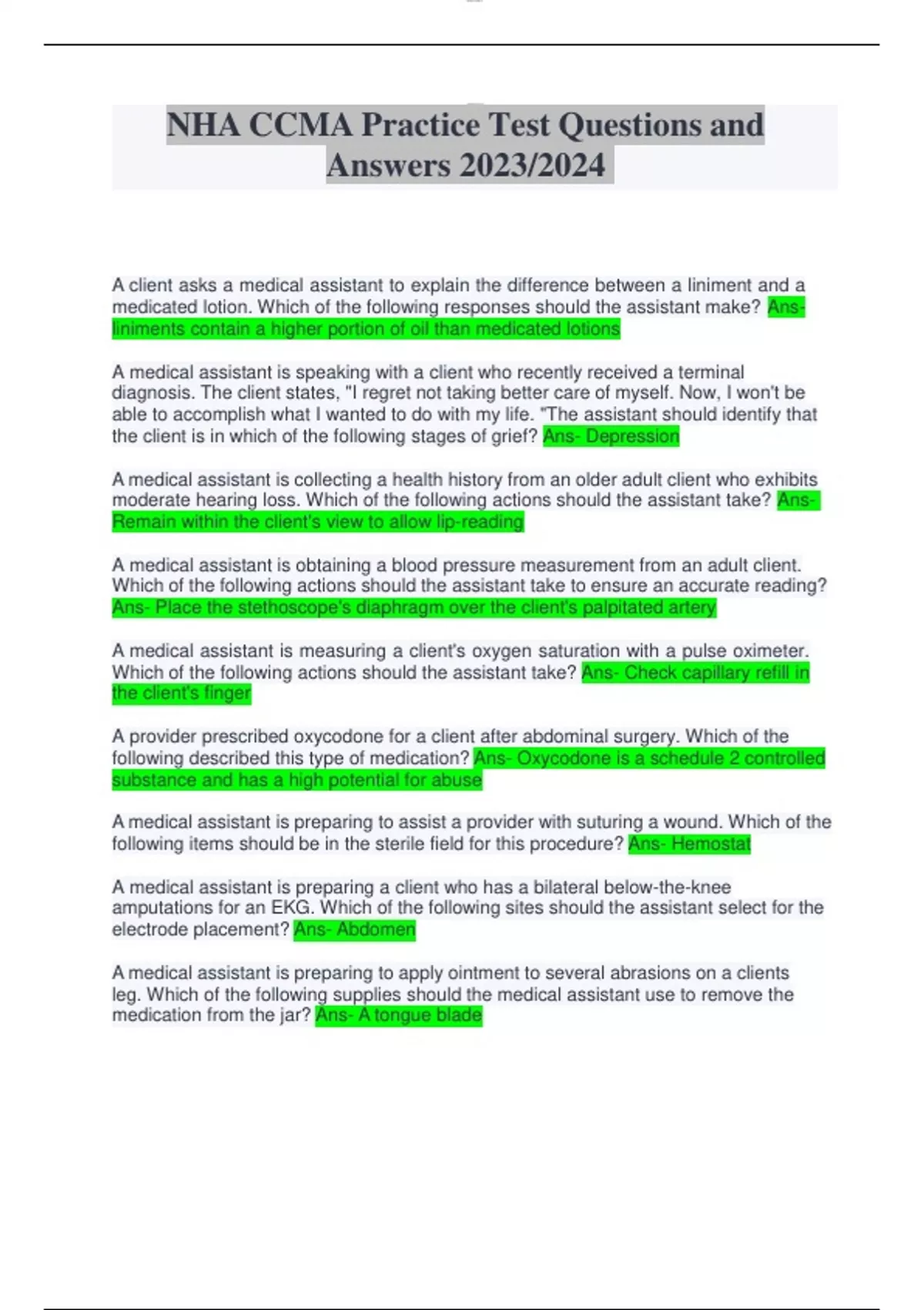 NHA CCMA Practice Test Questions and Answers 2023/2024